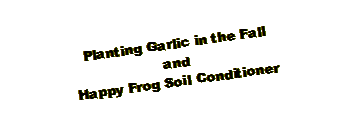 Come in and check out my Gardening & Organic products: Natural & Organic insecticides, fungicides, fertilizers, composters, wormtopias, gloves, books, container gardens, great garden gifts and much more! We have Beneificial Insects in season. Lady Bugs, Lacewings. We carry Red Wigglers for making your own "Black Gold" ******************************************************************* Plant Garlic in the Fall for Summer Harvest Fall is the perfect time to plant Garlic. There have been studies done that have shown garlic bulbs planted in the fall produce twice as much than bulbs in the spring. You need to plant garlic about 4-6 weeks before the ground freezes so it can set roots but not necessarily sends new shoots up. If you get a some growth before winter arrives no need to worry, your garlic plants will be perfectly fine. For more info on planting garlic e-mail patty@pattysplants.com ******************************************************************* "Feed The Soil & The Soil Will Feed your Plants" Plants are only as good as the soil you grow them in. By working in organic matter over a period of time, you will get great results. Every year will get better and better. Add leaves to your garden in the fall and let the worms take over. You can top dress with organic matter around your flower, herb beds and even around your trees and shrubs. Use Happy Frog soil conditioner to get your plants off to a good start and keep them healthy. It is hand-blended in small batches, Happy Frog Soil Conditioner contains forest humus, bat guano, and earthworm castings. For an added boost to plant development, it also contains beneficial microbes and humic acid, both of which strengthen roots while aiding nutrient absorption. You can work it in your soil and use it as a fine conditioning mulch. Comes in three cubic feet bales. Click to see the list of the Heirloom & Organically grown vegetable and herb plants that we carry at Patty's Plants. Organic Tomato ,Pepper ,Veggie varieties, Organic herb and flower lists. Patty's Plants 220 S. Janesville St. Milton WI (608)-580-0066 patty@pattysplants.com |