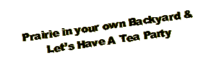 Prairie In Your Own Backyard? Why not? A garden that, once it's established is low maintenance. With our busy schedules isn't that what we want. Wouldn't we rather be lounging on our favorite lawn chair watching the birds and the butterflies sipping on mint juleps? Ok maybe lemonade, wine, beer. Prairie Gardens aren't for everyone. What some people think as a beautiful natural habitat for wildlife others may think it's nothing but an unkept mass of weeds. What is a Native Prairie and a Prairie Plant? A native prairie is an eco systems area that may have limited rainfall, usually have hot summers ( not this year for us) and cold winters. Prairie plants are native wildflowers, tall grasses, legumes, sedges and mixed grasses. These all make up a prairie garden. They are plants that have evolved over thousands of years in a particular region. Some have adapted and survived growing along side non-native species. Sadly some have been taken over by non natives. To read more about small scale prairie gardens subscribe to my September 09 Newsletter at patty@pattysplants.com Do tea parties still exist? I would have to say, "yes". Tea parties may have changed in some areas of the country. They may not be as formal as the used to be, but do they really have to be. What are the reasons for a tea party anyway? There could be many reasons, from getting together to share stories, memories, to give comfort, even planning events or having an informal business meeting. When I was little I loved having tea parties with my mom. Having one on one "sharing" time with just my mom and me. I couldn't wait to get out the special tiny set of china. I must have had and actually still have five little sets of china. My favorite one had a mama duck on the tea pot and all the cups had the baby chicks. I did the same thing with my daughter. She used a different china set for each tea party. Some of mine where pasted down to her as my mom gave me some of hers. My daughter would send out an invitation to meet up in her room. She would have everything set and ready to go. We would eat mini cookies and sip on lemonade . (her choice of beverage). As she got older, she would bring everything out to the garden while I was out weeding. She'd tell me I had to stop for a while because it was time for tea. These times she would bring the iced tea out & some very yummy breads. We would sit and talk about girlfriends, shopping and boys. Then we would count how many butterflies were in the garden. Good times, Good times! Tea is also healthy for you. Go to: Healing Herb Chart To help your immune system to better fight off colds and flu, drink tea. It can be an easy comforting way to relief your symptoms. They say healing comes from within so why not let tea help. Having "A Tea Party" is much like a flower luring a bee. Healthy plants release their scent( the volatile oils) to send signals to either attract or repel certain insects. The oil also helps a plant resist bacteria and viruses by acting like an antiseptic. When we make tea with herbs we are also releasing the volatile oils or organic compounds in a way to help prevent or counteract an unhealthy situation. Add green or black teas to your herbal tea for even more benefits. There was a Harvard study that showed people who drank 5 cups of tea a day (black or green) for two weeks transformed their t-cells into super cells that produced 10 times more cold fighting ability. Other germs like infected cuts & food poisoning were also defeated. Even drinking less than 5 cups helped. Tea sales reached 1.9 million last year with most of the sales in specialty teas. This is were herbal tea comes in. There are many herbal teas that are good for your health too. See: Drink Herbal Tea For Your Health We can thank the "Daughters of Liberty" for starting us on herbal teas. During the days of the 'Boston Tea Party' the ladies made up their own teas using sage and other local plants, we call herbs. An herbal tea is actually called a tisane or herbal infusion. It doesn't become a "real tea" unless you add some black, green or oolong tea to it. They all come from the tea plant- Camellia sinensis. So next time you want to have your daughter, granddaughter or even a friend over, think about a tea party for memories, comfort and health. February's Newsletter 08 includes: Simple Organic and natural gardening tips for the home gardener |