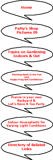 Prairie In Your Own Backyard? Why not? A garden that, once it's established is low maintenance. With our busy schedules isn't that what we want. Wouldn't we rather be lounging on our favorite lawn chair watching the birds and the butterflies sipping on mint juleps? Ok maybe lemonade, wine, beer. Prairie Gardens aren't for everyone. What some people think as a beautiful natural habitat for wildlife others may think it's nothing but an unkept mass of weeds. What is a Native Prairie and a Prairie Plant? A native prairie is an eco systems area that may have limited rainfall, usually have hot summers ( not this year for us) and cold winters. Prairie plants are native wildflowers, tall grasses, legumes, sedges and mixed grasses. These all make up a prairie garden. They are plants that have evolved over thousands of years in a particular region. Some have adapted and survived growing along side non-native species. Sadly some have been taken over by non natives. To read more about small scale prairie gardens subscribe to my September 09 Newsletter at patty@pattysplants.com Do tea parties still exist? I would have to say, "yes". Tea parties may have changed in some areas of the country. They may not be as formal as the used to be, but do they really have to be. What are the reasons for a tea party anyway? There could be many reasons, from getting together to share stories, memories, to give comfort, even planning events or having an informal business meeting. When I was little I loved having tea parties with my mom. Having one on one "sharing" time with just my mom and me. I couldn't wait to get out the special tiny set of china. I must have had and actually still have five little sets of china. My favorite one had a mama duck on the tea pot and all the cups had the baby chicks. I did the same thing with my daughter. She used a different china set for each tea party. Some of mine where pasted down to her as my mom gave me some of hers. My daughter would send out an invitation to meet up in her room. She would have everything set and ready to go. We would eat mini cookies and sip on lemonade . (her choice of beverage). As she got older, she would bring everything out to the garden while I was out weeding. She'd tell me I had to stop for a while because it was time for tea. These times she would bring the iced tea out & some very yummy breads. We would sit and talk about girlfriends, shopping and boys. Then we would count how many butterflies were in the garden. Good times, Good times! Tea is also healthy for you. Go to: Healing Herb Chart To help your immune system to better fight off colds and flu, drink tea. It can be an easy comforting way to relief your symptoms. They say healing comes from within so why not let tea help. Having "A Tea Party" is much like a flower luring a bee. Healthy plants release their scent( the volatile oils) to send signals to either attract or repel certain insects. The oil also helps a plant resist bacteria and viruses by acting like an antiseptic. When we make tea with herbs we are also releasing the volatile oils or organic compounds in a way to help prevent or counteract an unhealthy situation. Add green or black teas to your herbal tea for even more benefits. There was a Harvard study that showed people who drank 5 cups of tea a day (black or green) for two weeks transformed their t-cells into super cells that produced 10 times more cold fighting ability. Other germs like infected cuts & food poisoning were also defeated. Even drinking less than 5 cups helped. Tea sales reached 1.9 million last year with most of the sales in specialty teas. This is were herbal tea comes in. There are many herbal teas that are good for your health too. See: Drink Herbal Tea For Your Health We can thank the "Daughters of Liberty" for starting us on herbal teas. During the days of the 'Boston Tea Party' the ladies made up their own teas using sage and other local plants, we call herbs. An herbal tea is actually called a tisane or herbal infusion. It doesn't become a "real tea" unless you add some black, green or oolong tea to it. They all come from the tea plant- Camellia sinensis. So next time you want to have your daughter, granddaughter or even a friend over, think about a tea party for memories, comfort and health. February's Newsletter 08 includes: Simple Organic and natural gardening tips for the home gardener |